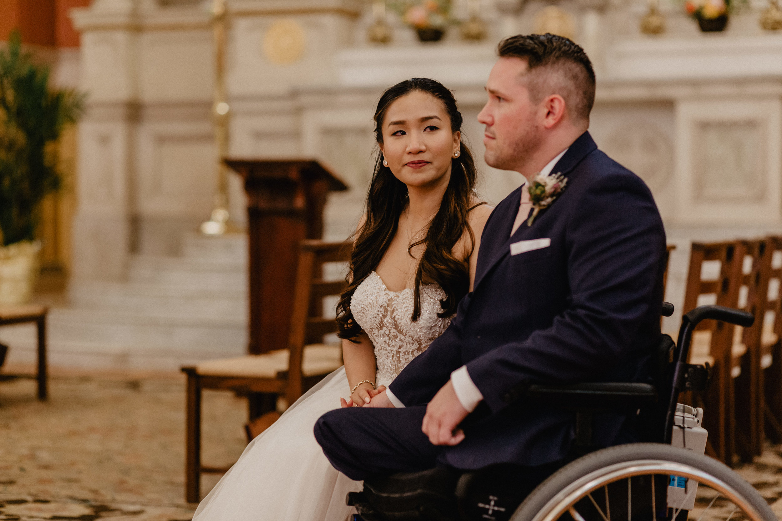 As long as this story is, the short story is that Greg served our country in the United States Army in Afghanistan and was severely injured by a roadside bomb; losing both of his legs and nearly his right arm. It was a long road to recovery and as much as you might think such a life altering injury would change a persons plans, they didn't change his. He had wanted to attend graduate school and go into the medical field and in doing so, he met Jazmine. She entered Greg's life in an intro to Psychology class and during their wedding ceremony, as Father noted, she displayed such a grace toward Greg, as well as others, that is truly unique and that made a big impression on Greg and to those who get to see them together. She is absolutely loved by all and you'll see in her getting ready photos that she had both of her sisters and cousin crying and laughing at the same time all while somehow keeping herself together and looking radiant. Their wedding was filled with family, friends, and lots of laughter (special thanks to Greg's brother Steve for his intro joke during the toasts!) and so much hope for the future.